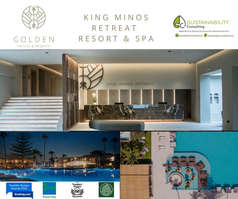 Ολοκληρώθηκαν οι εκθέσεις συμμόρφωσης σύμφωνα με τις προβλέψεις του άρθρου 19 του Εθνικού Κλιματικού Νόμου (ν. 4936/2022) για τις μονάδες SENSEANA seaside resort & aquadventure και KING MINOS retreat resort & spa του ομίλου GOLDEN HOTELS & RESORTS.